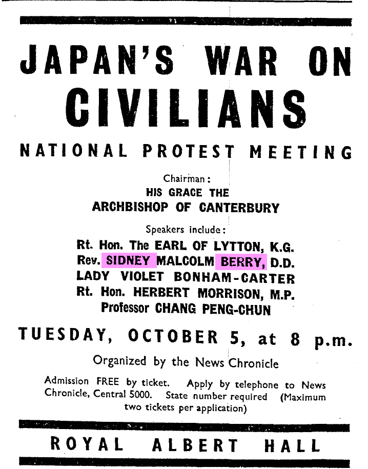 The secretary of the Congregational Union of England and Wales (Dr. Sidney M. Berry) announces that the Catholic Church has refused to cooperate in the Anglican Archbishop's appeal to all churches to participate in an international religious endeavor to obtain world peace.